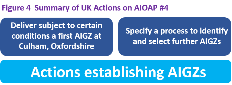 The government agreed actions for all 50 AIOAP recommendations. For AIOAP4, it actioned a first AIGZ for delivery at Culham in Oxfordshire. That was to be followed up by publishing a process by which further AIGZs could be selected for development (Figure 4)