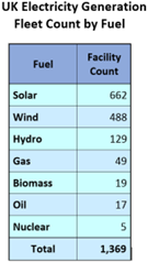 Data source for UK Electricity Generation Fleet Count by Fuel insert = Source 1